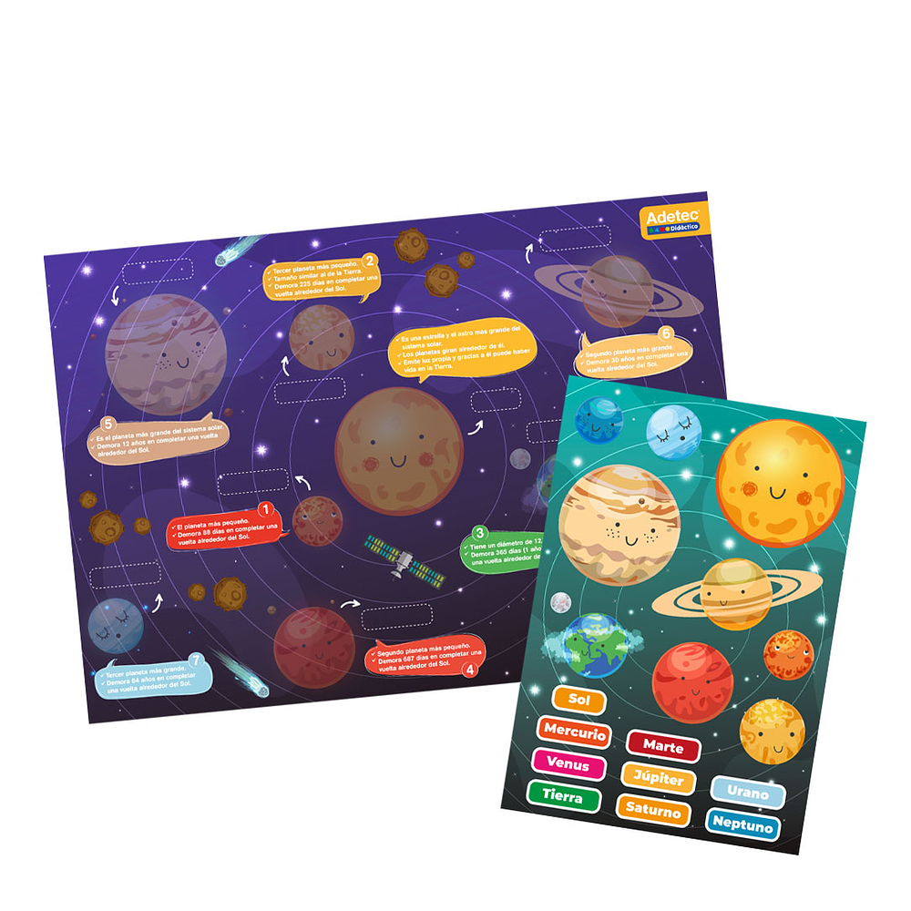 LÁMINAS MAGNÉTICAS SISTEMA SOLAR. Descubre todos los planetas del Sistema Solar con las increíbles Láminas Magnéticas Adetec. Para niños y niñas de 3 años o más.