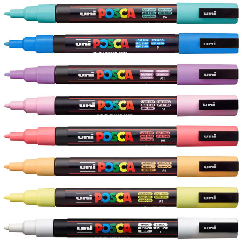 Posca es un rotulador a base de agua, no tóxico y sin disolventes, que facilita su trabajo al ser un rotulador multiusos, apto para varios tipos de superficies como: papel, lienzo, paredes, madera, vidrio, plásticos, cauchos, cerámica, porcelana, metales, entre otros. Tras la aplicación, el secado es ultrarrápido. Solo toma de 1 a 2 minutos tener la pieza trabajada con un acabado impecable.