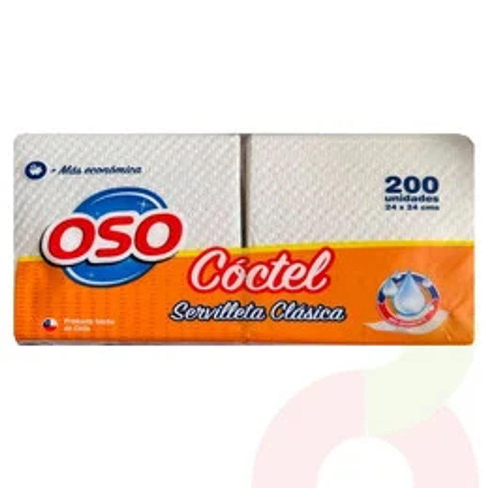 Servilleta Cóctel clásica 200 unidades de 24x24, más absorbente y económico.
