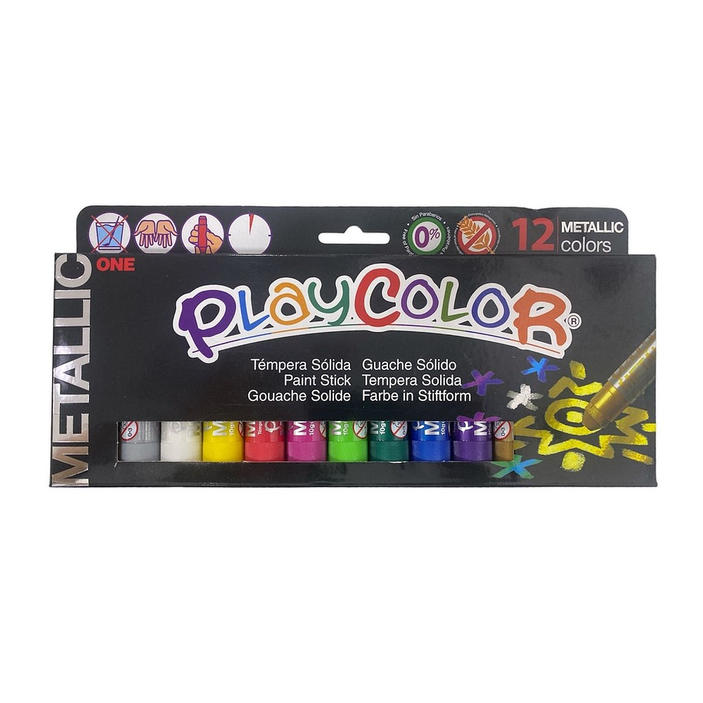 Tempera solida de barras de 10 grs. con colores metalizados. Acabado brillante y no necesita agua ni pincel.