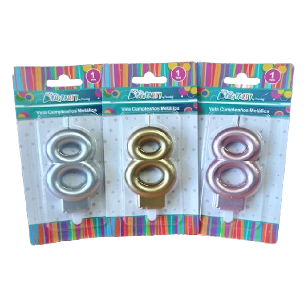 DESCRIPCIÓN: Vela de numero, encuéntrala en tres colores metálicos; dorado, plateado y rosado. Ideal para cumpleaños y ocasiones especiales.